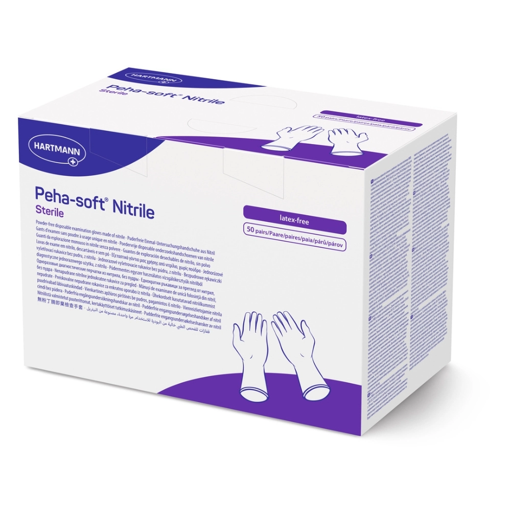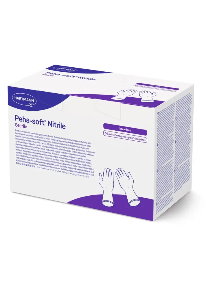 De Peha-soft® Nitril Steriele Onderzoekshandschoenen van Hartmann zijn hoogwaardige, latexvrije handschoenen voor eenmalig gebruik. Vervaardigd uit zacht, blauw nitrilrubber, bieden ze een uitstekende bescherming tegen bacteriën, virussen en chemische stoffen. De poedervrije afwerking vermindert het risico op allergische reacties, terwijl de gechloreerde binnenlaag het aan- en uittrekken vergemakkelijkt. Dankzij de getextureerde vingertoppen en perfecte pasvorm garanderen deze handschoenen een uitstekende grip en tastgevoeligheid, essentieel bij nauwkeurige medische handelingen zoals verbandwissels, katheterisaties en intubaties.