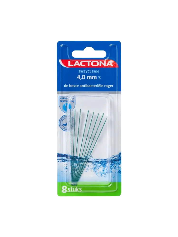 De Lactona Easyclean S 4,0 mm is ontwikkeld voor het grondig reinigen van wat grotere tussenruimtes tussen tanden en kiezen. Dankzij de diameter van 4,0 mm bereikt de rager probleemloos plekken waar een gewone tandenborstel niet goed bij kan, zoals onder bruggen, rondom implantaten of bij orthodontische apparatuur.