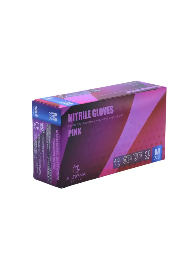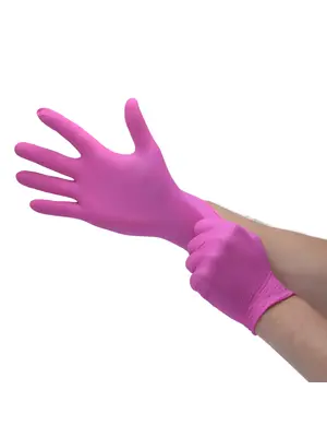 1 dispenserdoos bevat 100 roze soft nitril wegwerphandschoenen