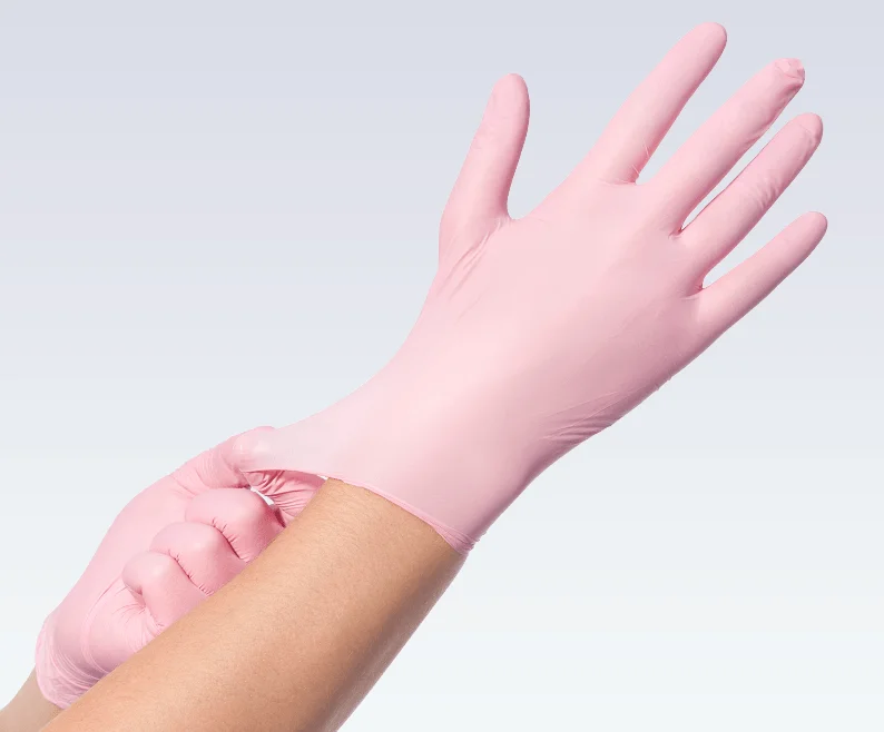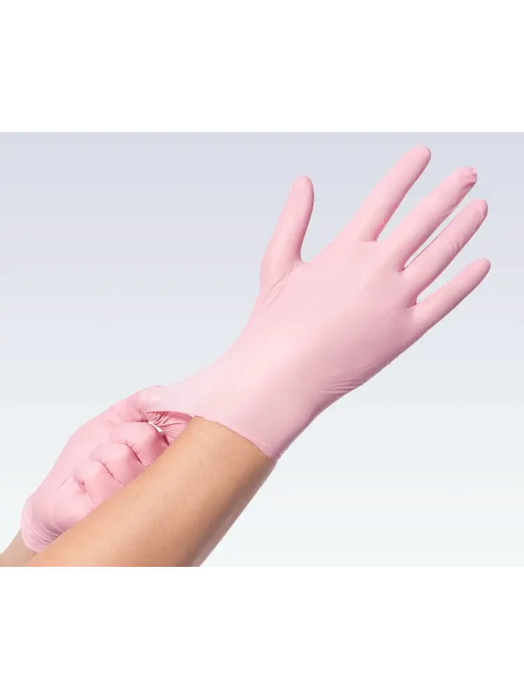 1 dispenserdoos bevat 100 roze soft nitril wegwerphandschoenen