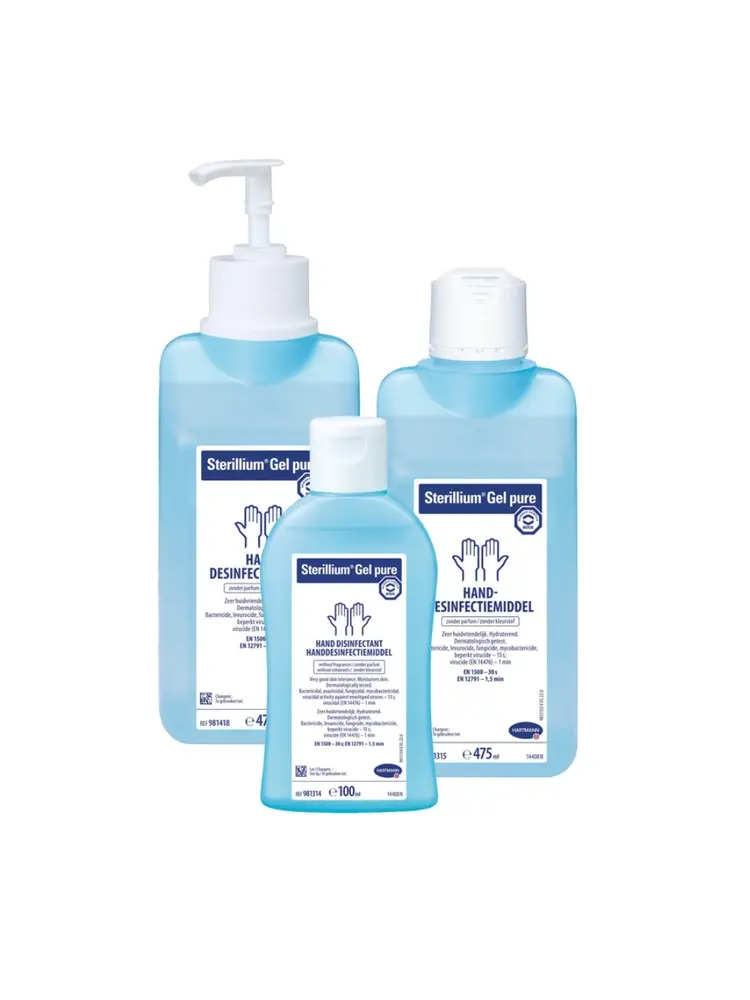 Sterillium® Gel pure van Hartmann is een gebruiksklare, alcoholische handdesinfectiegel met een breed antimicrobieel spectrum. De formule bevat 85% ethanol en is vrij van kleur- en geurstoffen, waardoor het bijzonder geschikt is voor gebruikers met een gevoelige huid.