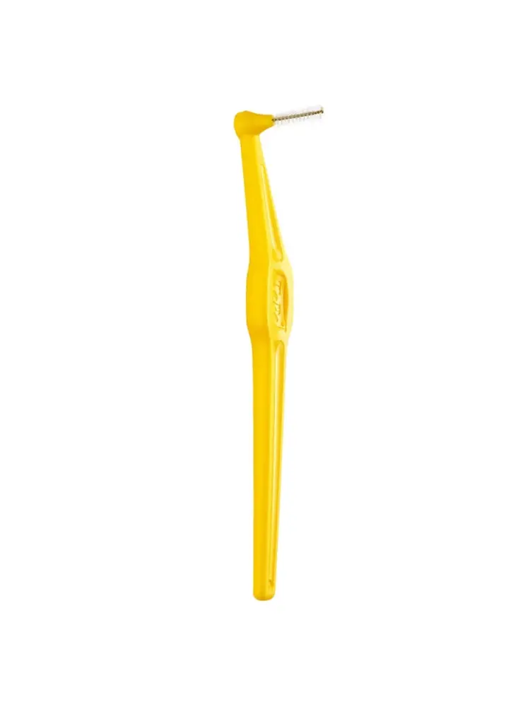 TePe Angle™ Geel (ISO 4) is ontwikkeld voor de reiniging van middelgrote tot bredere interdentale ruimtes. Dankzij de hoekkop en de lange, platte handgreep bereik je eenvoudig ook de achterste kiezen en lastig toegankelijke zones in het gebit.