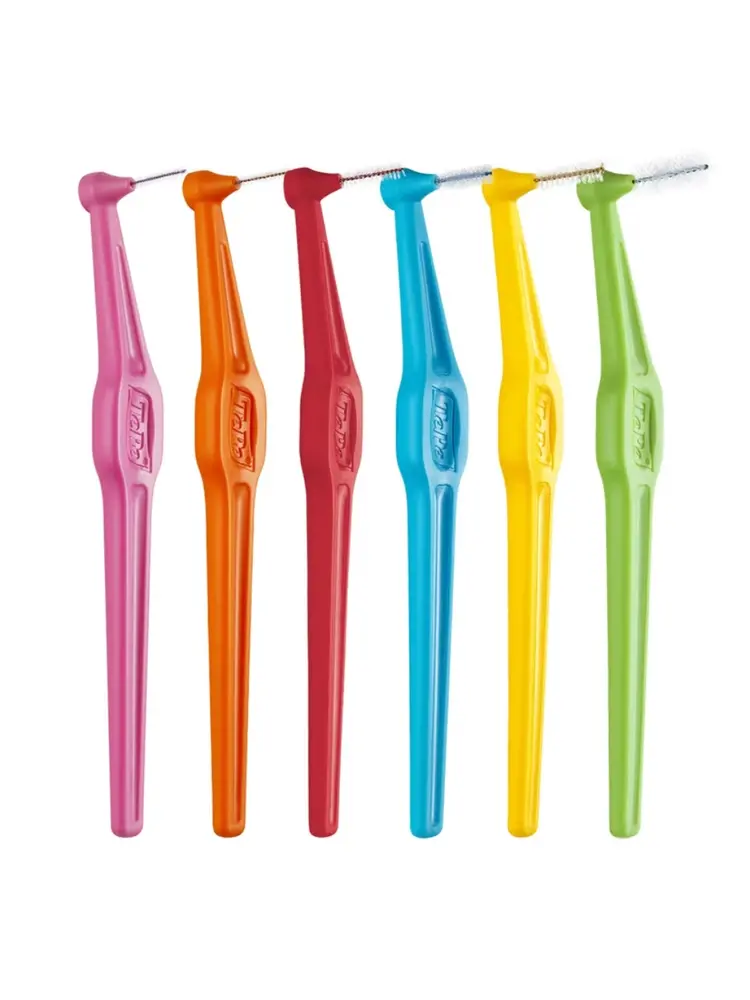 De TePe Angle™ Mixpack bevat zes interdentale ragers in verschillende maten om eenvoudig de juiste maat te ontdekken of meerdere maten tegelijk te gebruiken. Deze set bestaat uit: