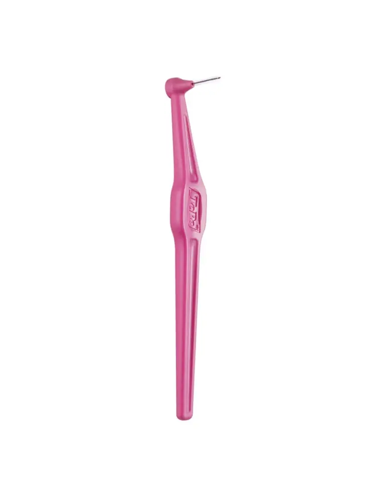 De plastic-gecoate draad met afgeronde tip biedt comfort en voorkomt schade aan tanden en tandvlees. Klinisch bewezen verwijdert de TePe Angle™ bij dagelijks gebruik tot 40% meer tandplak dan poetsen alleen. De roze kleurcode staat voor ISO-maat 0 met een borsteldiameter van 0,4 mm.