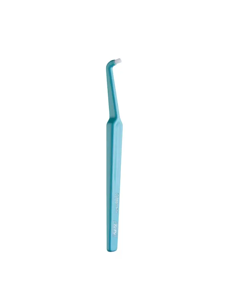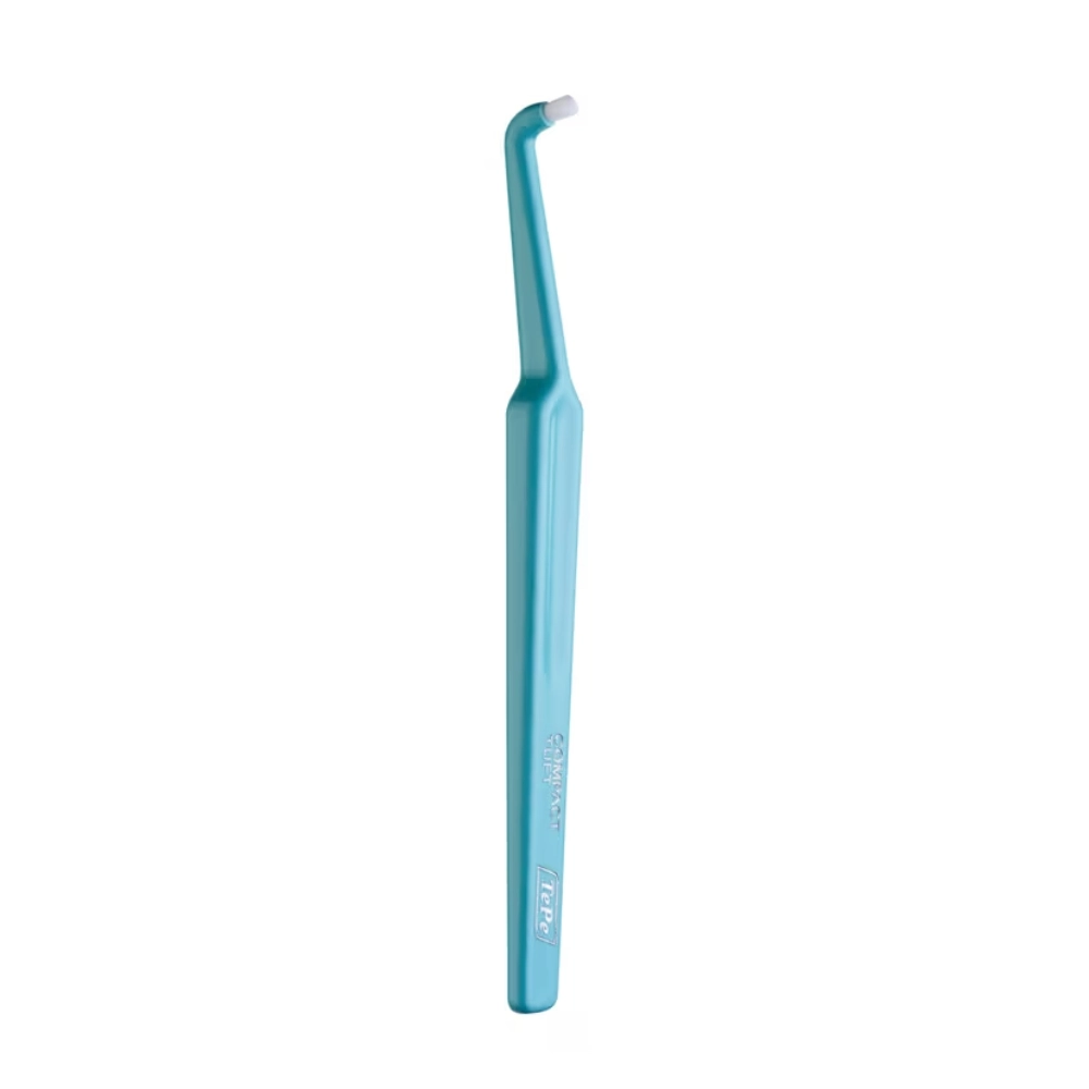 De TePe Compact Tuft is een precisieborstel met een kleine, ronde borstelkop en dicht geplaatste nylon haren. Deze unieke vorm maakt hem ideaal voor het schoonmaken van moeilijk bereikbare plaatsen, zoals de achterste kiezen, langs de tandvleesrand en rondom implantaten of brugconstructies.