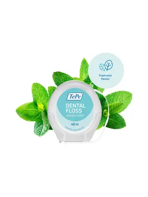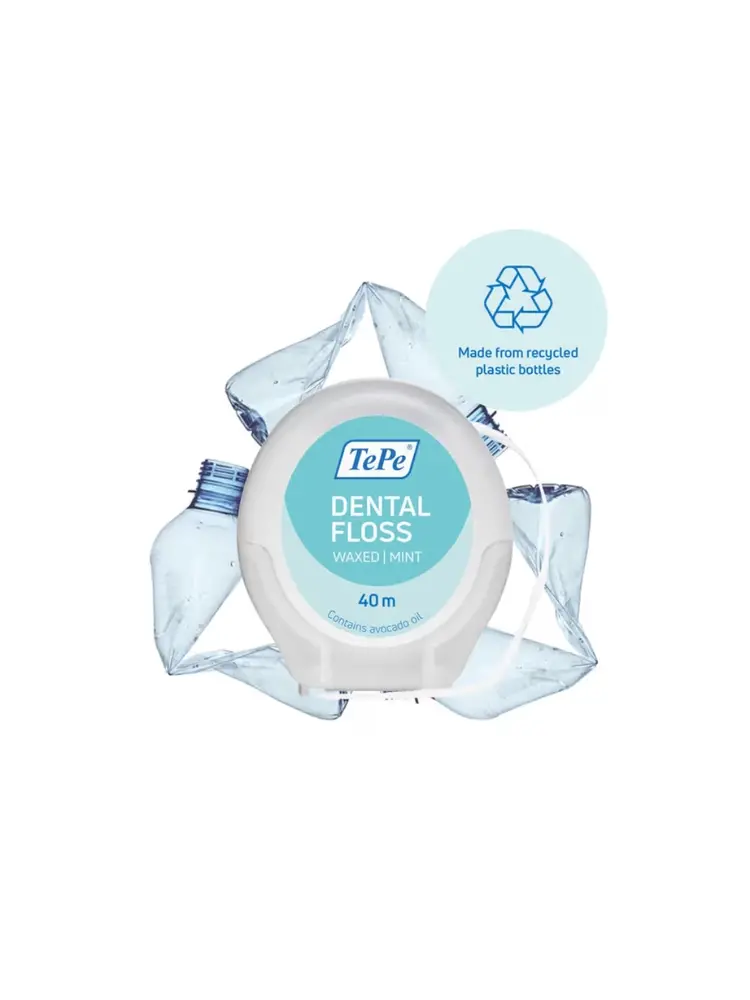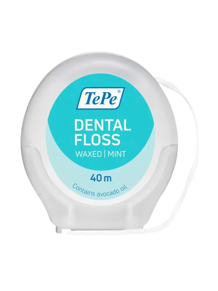 TePe Dental Floss is ontwikkeld voor grondige, maar milde reiniging tussen tanden. De flosdraad bestaat uit meerdere fijne strengen en een wax-coating van plantaardige was en avocado-olie, waardoor hij soepel tussen tanden glijdt zonder te rafelen.