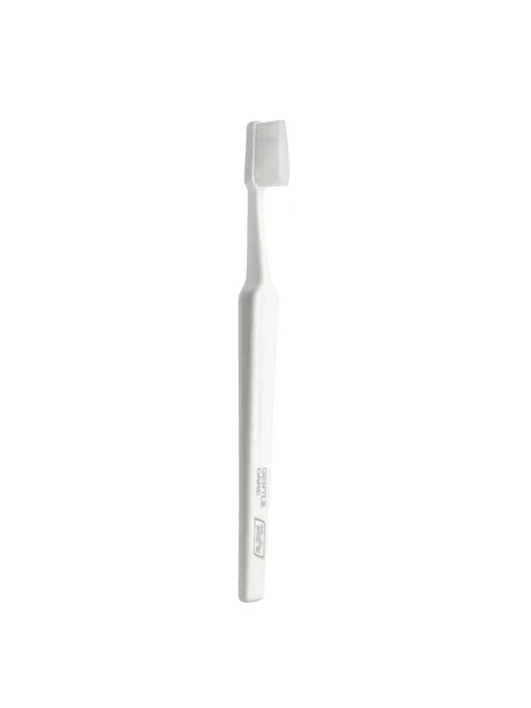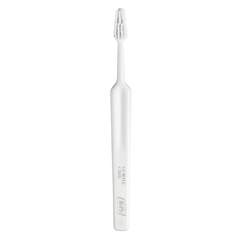 De TePe Gentle Care™ is een speciale borstel met superzachte filamenten, ontworpen voor gebruik in gevoelige mondsituaties. Deze borstel is aanbevolen na kaakchirurgie en bij patiënten met pijnlijke of kwetsbare orale weefsels, zeer gevoelige worteloppervlakken of een droge mond.