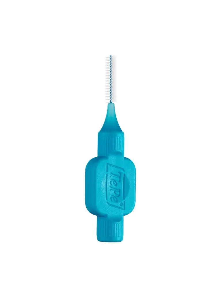TePe Original Blauw (ISO 3) is geschikt voor middelgrote interdentale ruimtes. De borsteldiameter van 0,6 mm zorgt voor effectieve plakverwijdering tussen tanden en kiezen. De ragers hebben een plastic-gecoate draad, afgeronde punt en een flexibele hals (ISO 0–3). Verwijdert tot 40% meer plak dan tandenpoetsen alleen.