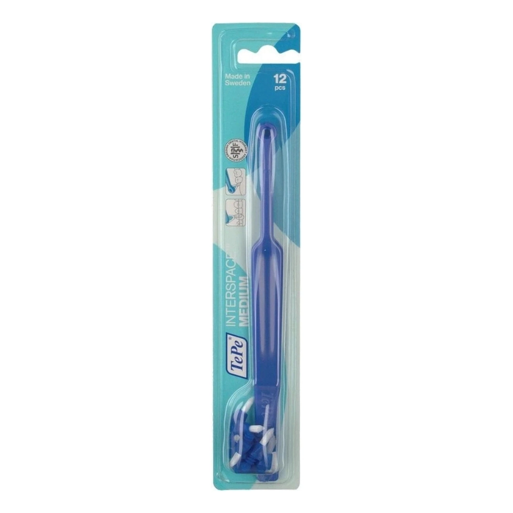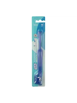 TePe Interspace™ Medium is een hoekige, enkele-tuft borstel ontworpen voor gebruik op moeilijk bereikbare en gecompliceerde mondzones zoals rond implantaten, bruggen, beugels en delen van de tandranden.