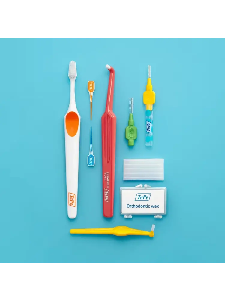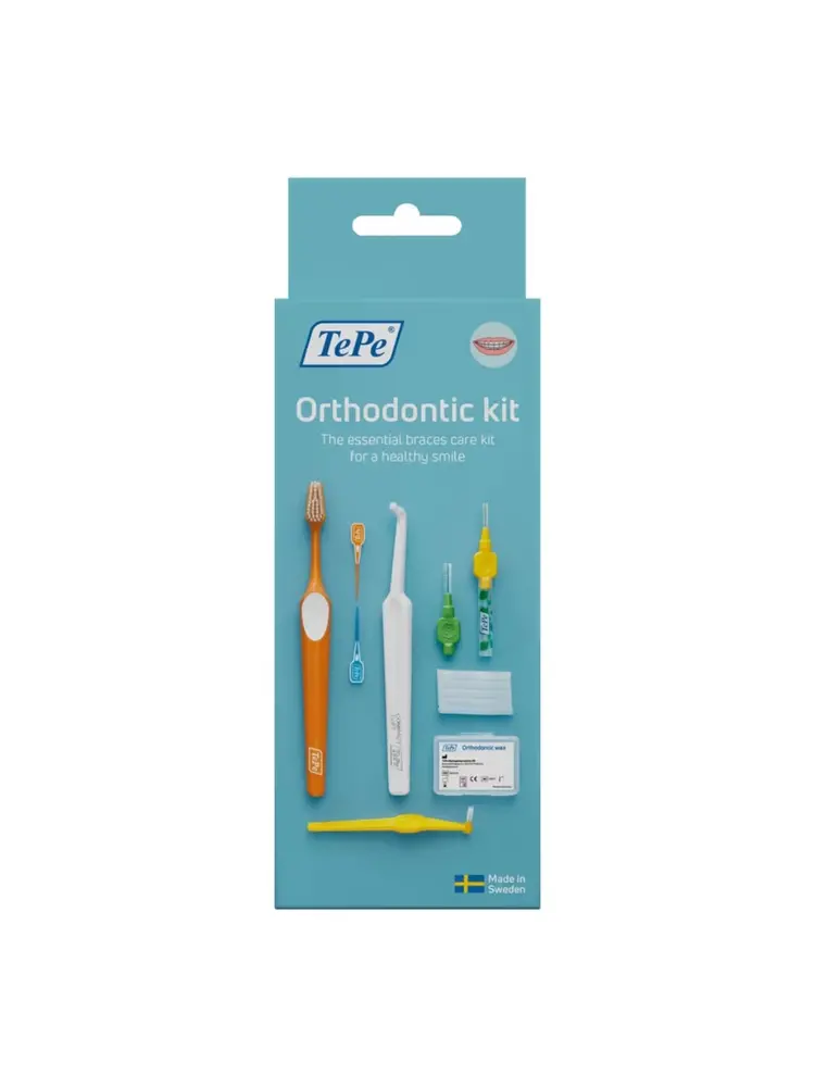 De TePe Orthodontie Kit is een compleet verzorgingspakket dat speciaal ontwikkeld is om tandverzorging rondom beugels, implantaten en bruggen te vereenvoudigen. Deze set bevat diverse gespecialiseerde hulpmiddelen—zoals gebogen borsteltjes, flossers en interdentale ragers—die samenwerken om plak en voedselresten zorgvuldig te verwijderen, ook op moeilijk bereikbare plekken.