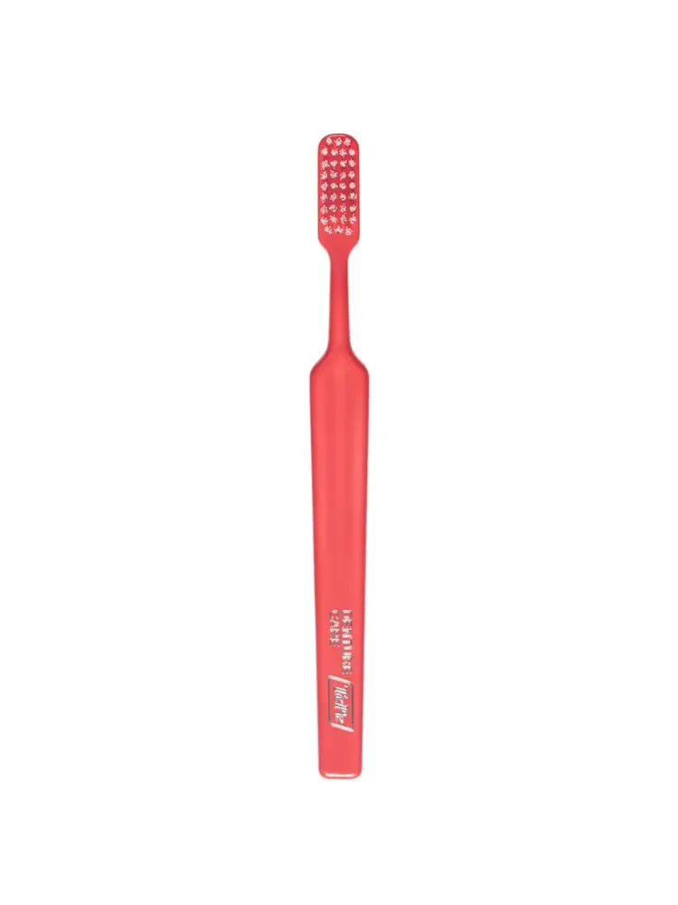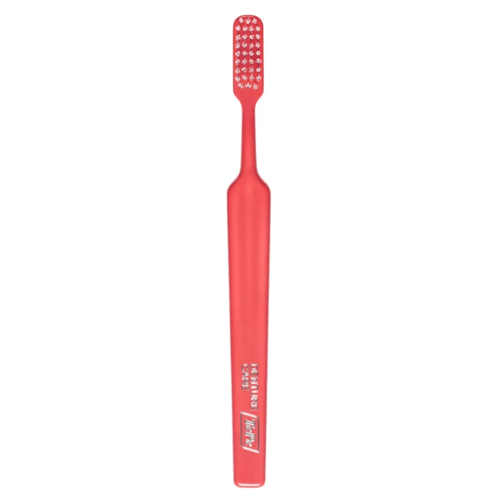 De TePe Protheseborstel is speciaal ontworpen voor het grondig reinigen van kunstgebitten, (gedeeltelijke) protheses en frames. De borstel heeft stevige nylon haren en een geïntegreerde schraperpunt waarmee hardnekkige aanslag eenvoudig kan worden verwijderd.