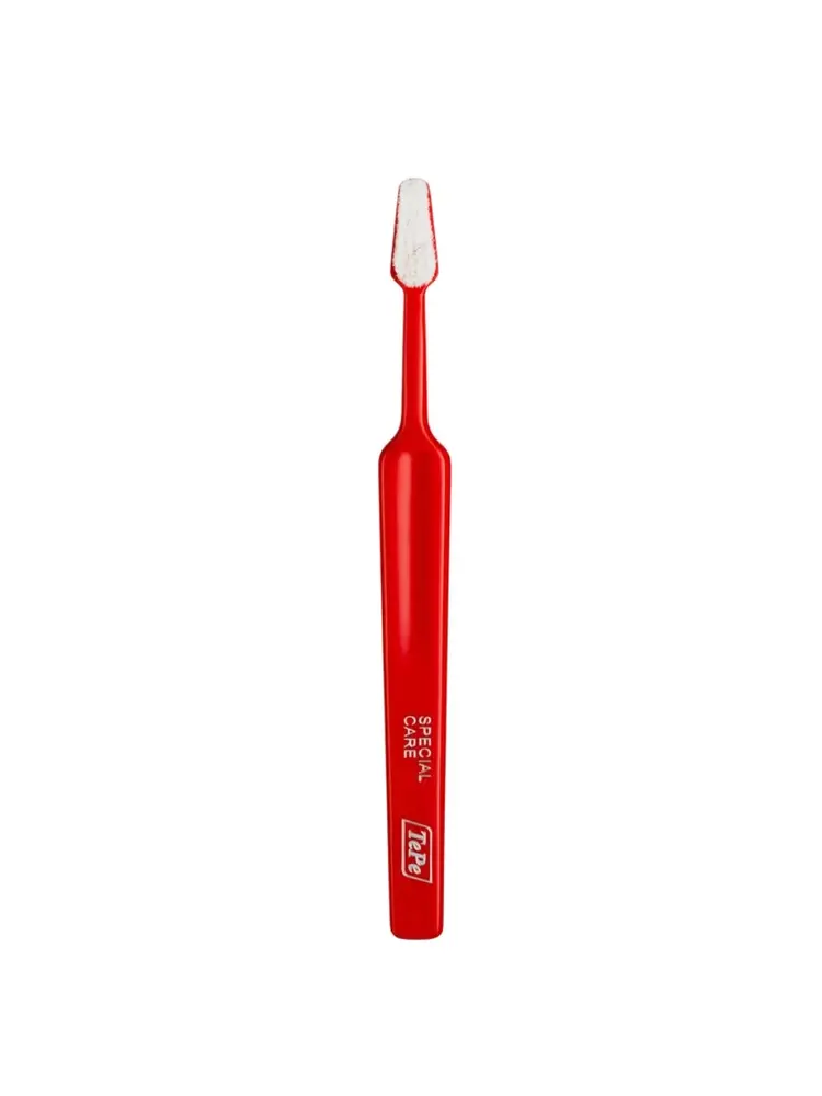 De TePe Special Care borstel is ontworpen voor kwetsbare situaties: na chirurgische ingrepen, bij gevoelige tandvleeszones of in herstelperiodes. Door de ultra-zachte filamenten en de fijne borstelkop kun je besmettingsgevoelige plekken voorzichtig reinigen zonder irritatie of schade.