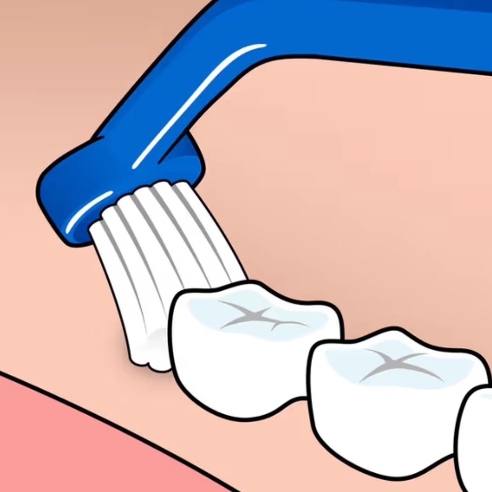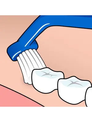 Deze borstel is zeer geschikt voor gebruik langs de tandvleesrand, langs brugconstructies, onder beugels en bij andere gebieden die lastig te bereiken zijn met standaard borstels.